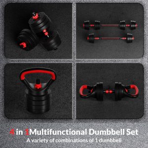 60LB 4-in-1 Portable Changeable Dumbbell, Barbell, and Kettlebell Set Adjustable