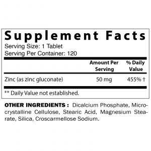 Vitamatic Zinc 50mg as Zinc Gluconate – Immunity Boosting Supplement 120 Tablets