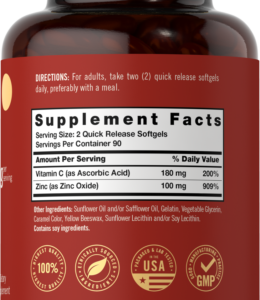 Zinc 100mg | with Vitamin C | 180 Softgels | Non-GMO | by Tahoe Nutritionals