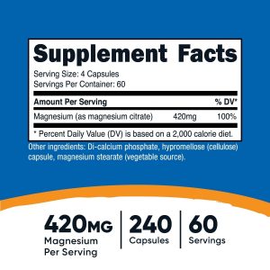 Nutricost Magnesium Citrate 420mg, 60 Servings, 240 Capsules -Vegetarian