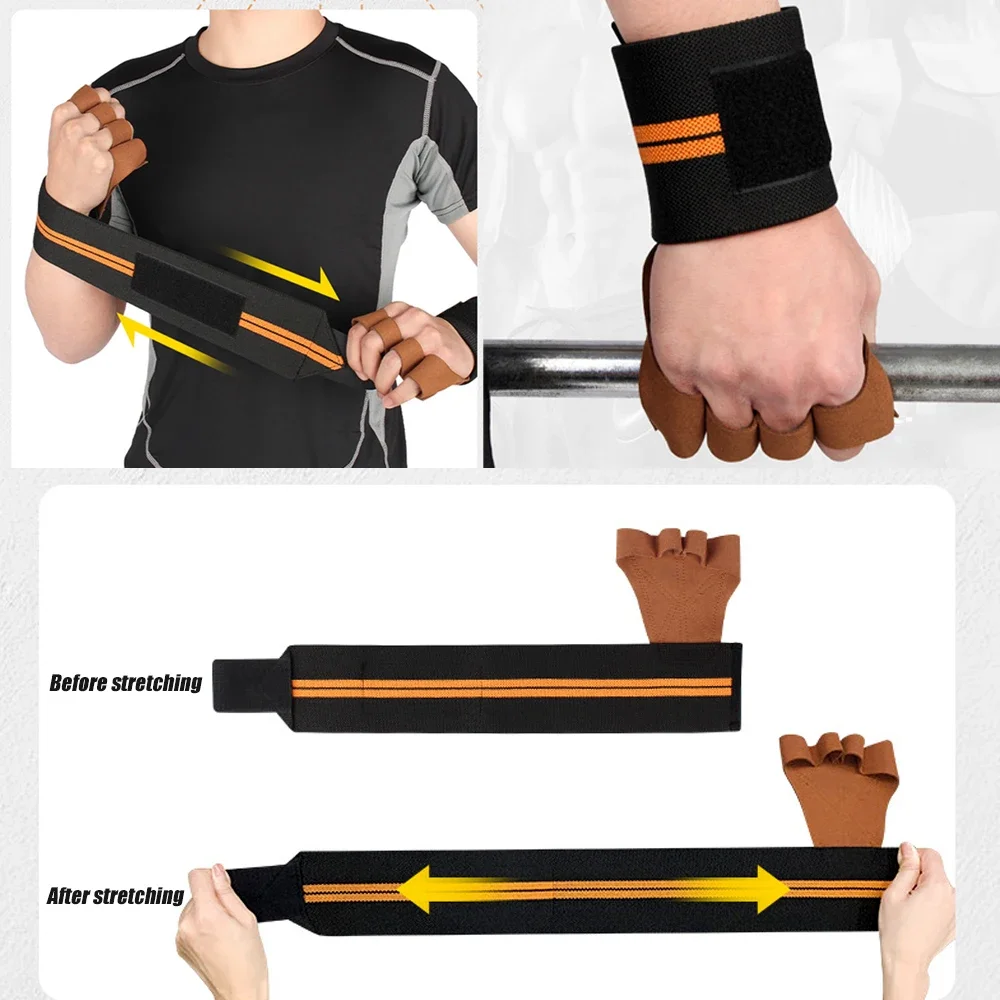 • Elastic Wrist Wraps: Fingerless workout gloves