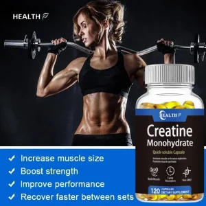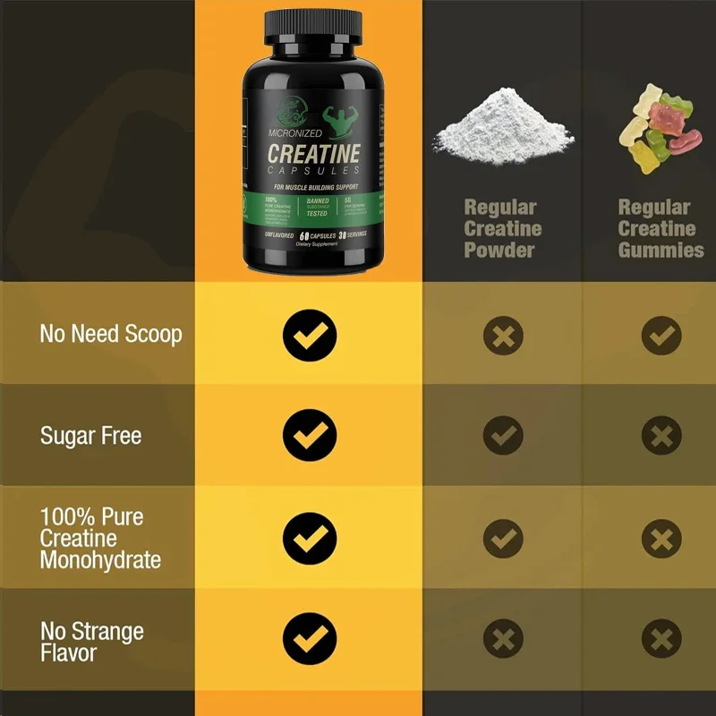 Capsule form – Each creatine capsule contains 1G of pure creatine, 2 capsules per serving, taken with a meal. 60 capsules per bottle, 30 portions per can. Suitable for monthly exercise nutrition supplements.