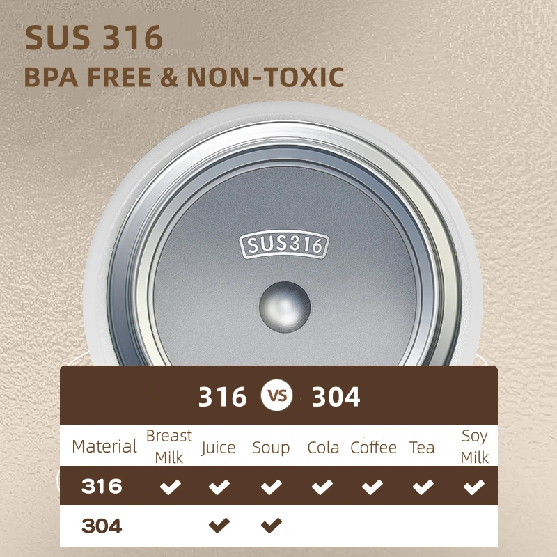 SUS316 Premium Stainless Steel: Engineered with double wall SUS316 food grade stainless steel (better than 18/8 stainless steel) and 100% toxic-free BPA-free lid, the bottle is free of any flavor or metal rust. Classic powder coat sustains the fresh hue of the bottle while stays snug in palms for non-slip grab
