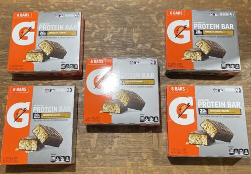 5 Boxes Gatorade Whey Protein Recover Bars. Chocolate Caramel. 20g Protein..