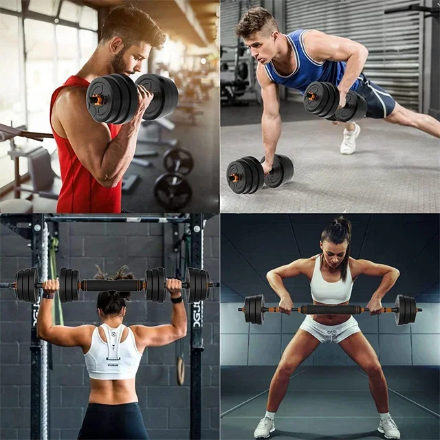Adjustable Dumbbells Set Barbell Weight with Connecting Rod Free Weights Solid Steel Barbells set Home Gym Workout Equipment