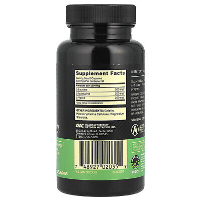 1000 mg Branched Chain Amino Acids – Per 2 Capsule Serving Dietary Supplement Versatile Amino Acid Support 2:1:1 Ratio of L-Leucine, L-Isoleucine and L-Valine Essential Amino Acid Support Authentic Optimum Nutrition Product Informed Choice – We Test, You Trust Informed Choice is a quality assurance program for sports nutrition products. The program certifies that nutritional supplements that bear the Informed Choice logo are regularly tested for banned substances by the world class sports anti-doping lab, LGC Limited.