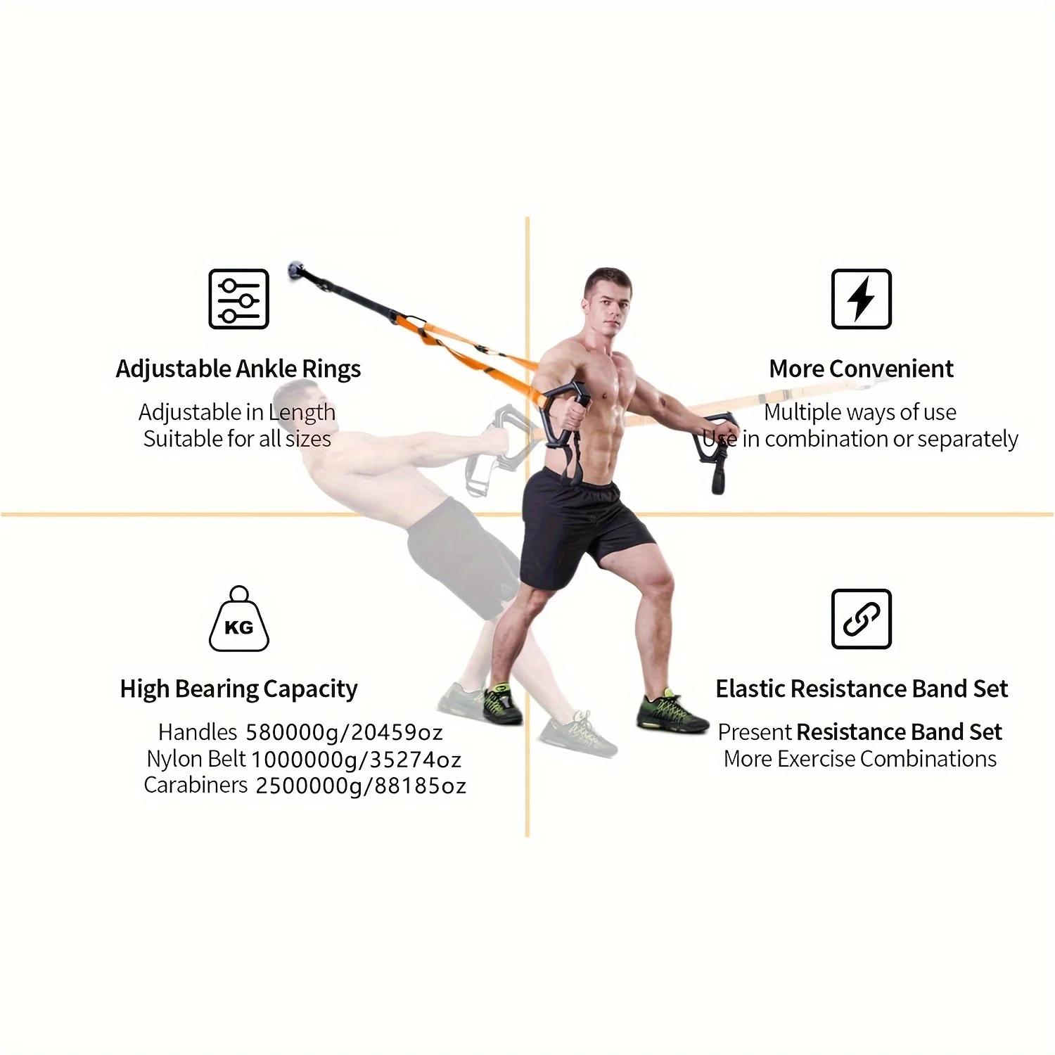 Top-Quality Construction: Engineered with premium nylon webbing and non-slip rubber, these bands offer superior comfort and durability, complemented by zinc alloy carabiners and reinforced links for reliable performance during intense workouts