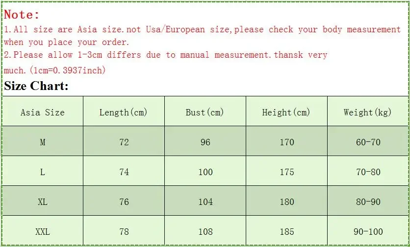 1.All size are Asia size.not Usa/European size,please check your body measurement when you place your order.