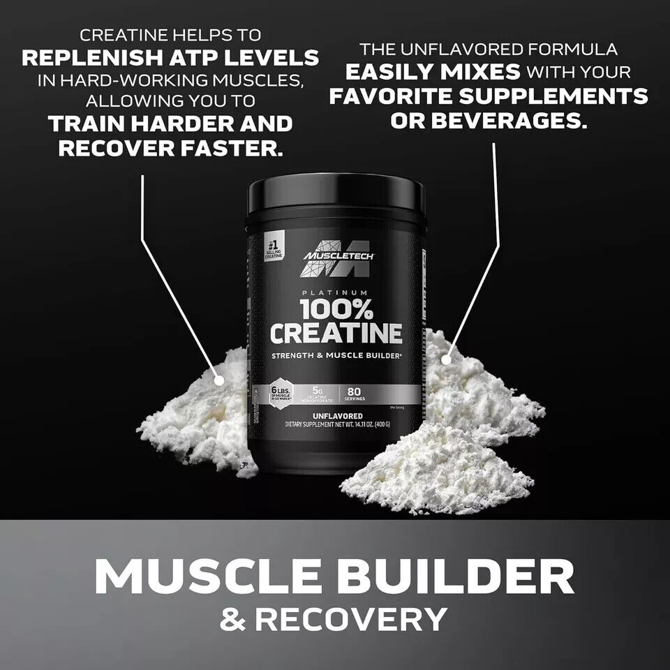 • Amplify Strength, Power & Performance: MuscleTech Platinum 100% Creatine provides your muscles with a high-quality form of micronized creatine. Studies show that creatine increases muscle mass and maximizes performance. Unflavored. 80 scoops per tub.