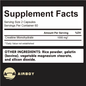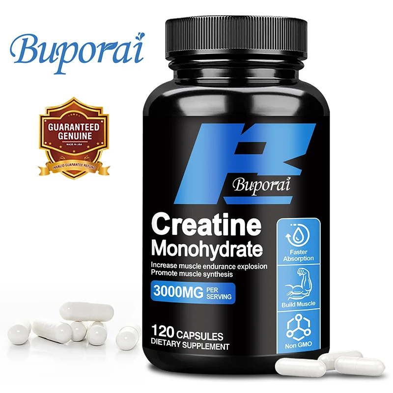 Body Performance: Creatine Monohydrate is widely used to enhance physical performance, including strength, speed, endurance and athletic performance. This is extremely valuable for athletes, fitness enthusiasts, and sports enthusiasts. Training Volume: Creatine Monohydrate helps relieve training fatigue and extend training time , allowing you to perform more reps and train at higher intensity. Improve sports performance – Creatine monohydrate capsules help improve performance during short-term high-intensity activities by increasing the amount of ATP in the body’s muscles. * Creatine capsules to help you lift more weight before fatigue. Plus, pre-workout capsules with creatine reduce recovery time between sets, allowing you to push harder and longer than before!