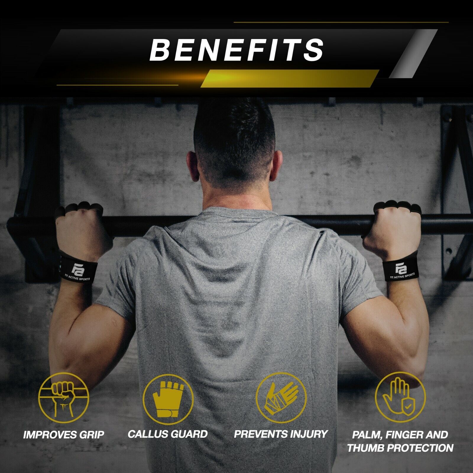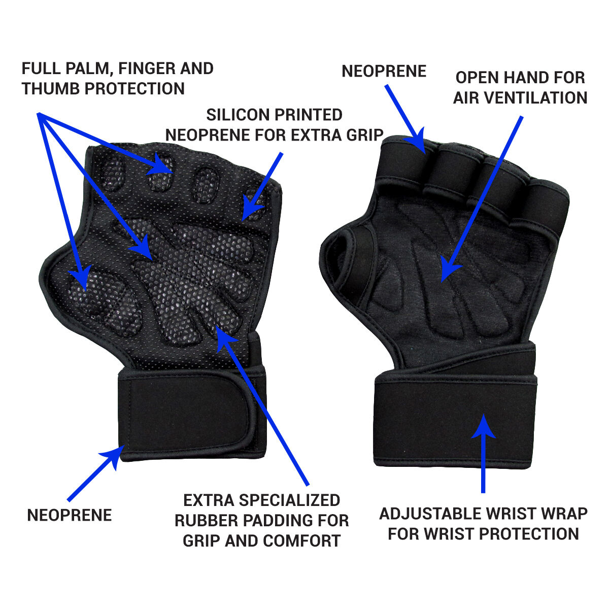 Fit Active Sports Premium gym gloves are made of high quality 3 to 4mm thick neoprene, making them light weight and durable at the same time. The silicon neoprene print enables you to experience extra tight grip for high volume movements like pull ups, muscle ups, and lightweight barbell movements resulting in extra reps. Excellent pull up gloves.