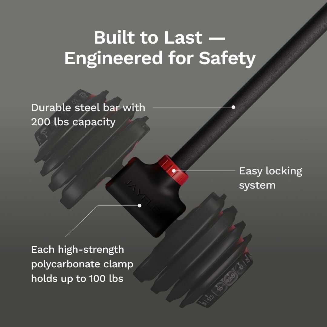 Jayflex Hyperbell Dumbbell Converter – Convert Dumbbells to Barbell Set and Kettlebell for Home Fitness – Adjustable & Up to 200 lb Capacity Weight Barbell for Weight Lifting