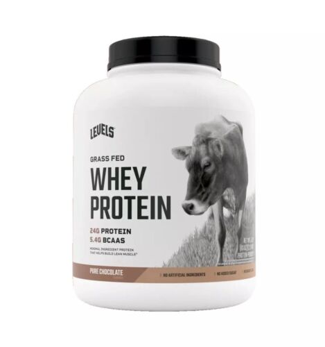 Levels Grass Fed 100% Whey Protein No Hormones Pure Chocolate 5 LB EXP 11/2025.