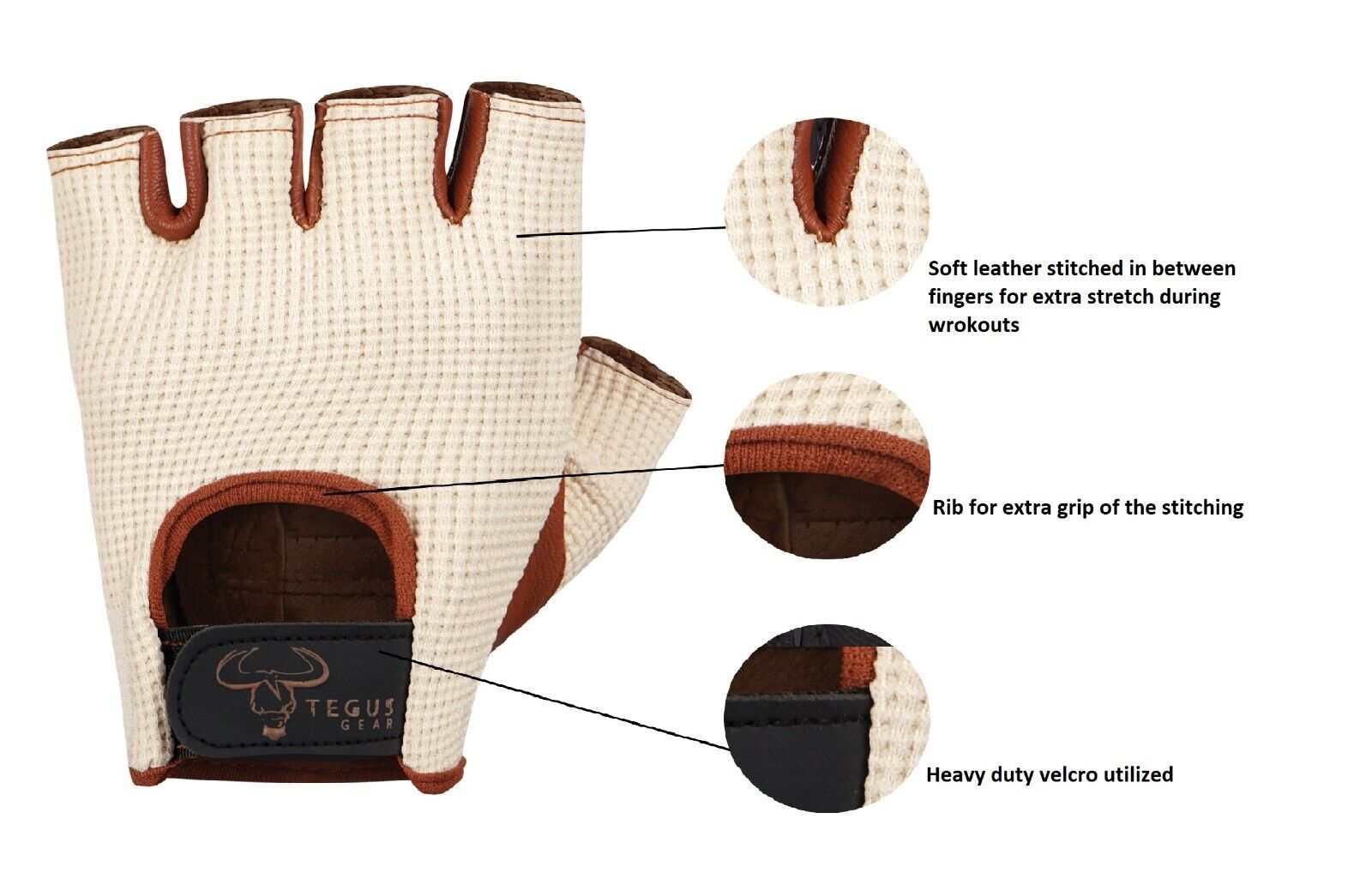 TEGUS GEAR high quality brand new weight lifting training gloves. Durable and comfortable to wear and remove. Perfect choice for weight lifting, body building, strength exercises. Comfortably fit to shape of your hands. Soft leather material to maintain natural hand movements. Non slip fitting.