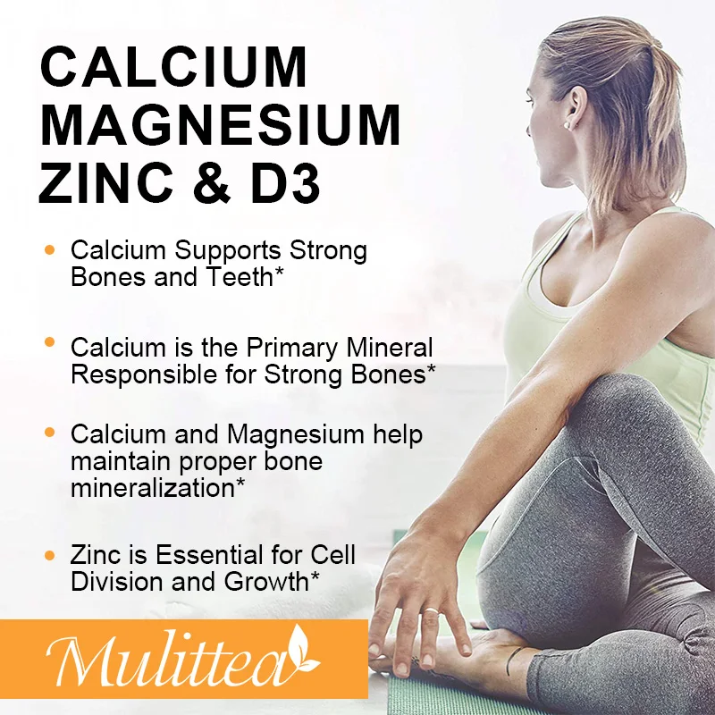 Mulittea Calcium Magnesium Zinc Capsules with Vitamin D3 for Strong Bones & Nervous System Health & Promotes Cell Growth