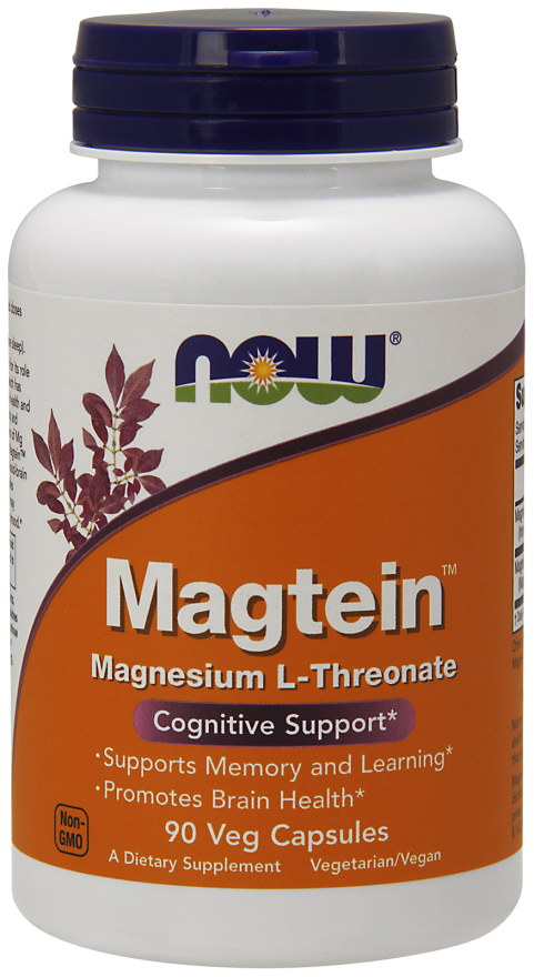 NOW Magtein 90 Veg Capsules Magnesium L-Threonate Promotes Brain Health 02/2027