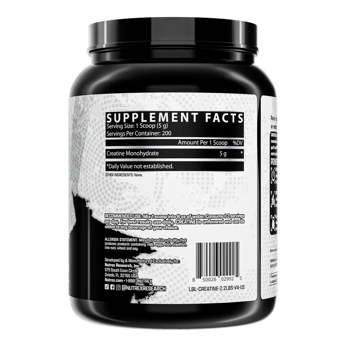 Nutrex CREATINE Monohydrate Powder Micronized Unflavored 200 Servings 1000 Grams