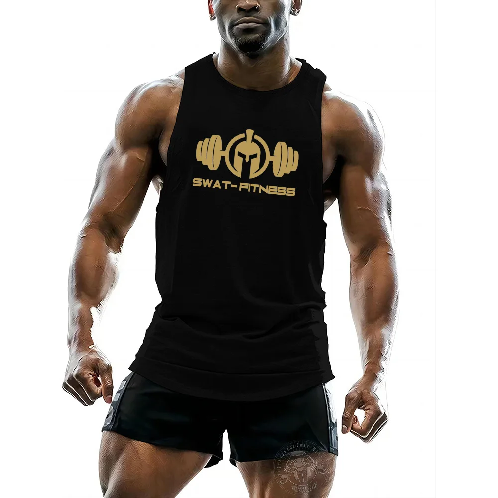 Summer tops Sports Gym Men’s Multi-color Fashion Casual Fun 2D Barbell Print y2k Adult Sports Sleeveless tops